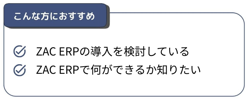 本記事では、ZAC ERPの主要な機能と、できること・できないことについて解説します。