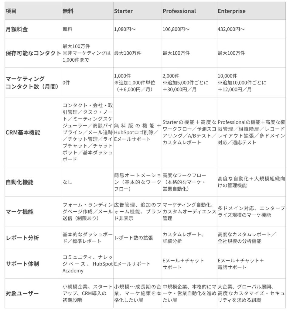 HubSpotの有料プランは、業務効率化や成果最大化を本格的に進めたい企業に適しています。